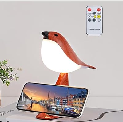 THOEWONG Small Bird Desk Lamp, Remote Rechargeable Cordless Table Lamp with 3 Color Temperatures, Remote Control & Touch Sensor, Multi-Function Battery Operated Bird Light for Bed…