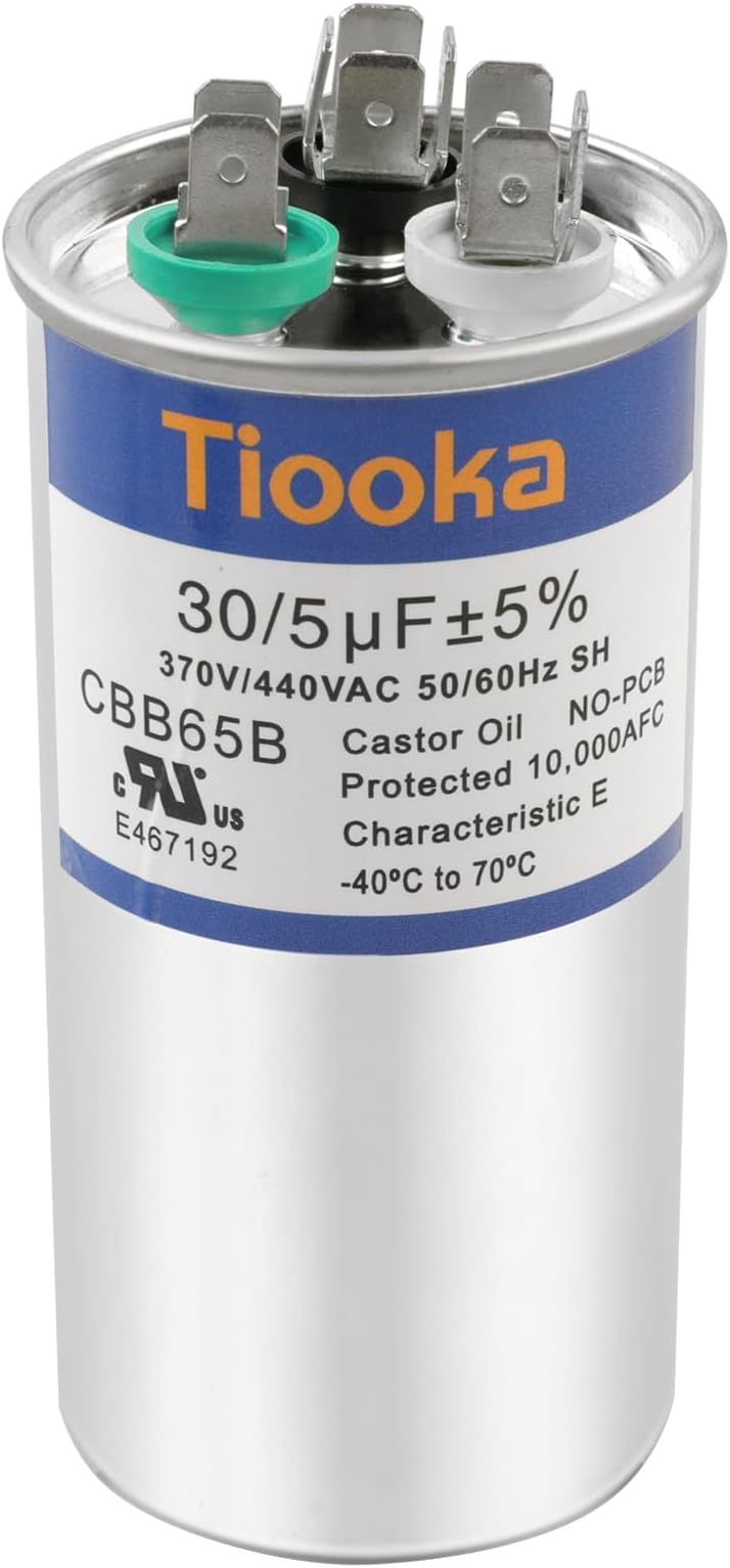 Tiooka 30+5 uF 30/5 MFD ±5% 370V/440VAC Dual Run Round Start A/C Capacitor CBB65B Air Conditioner Capacitors for AC Unit Fan Motor Start or Heat Pump or Condenser Straight Cool