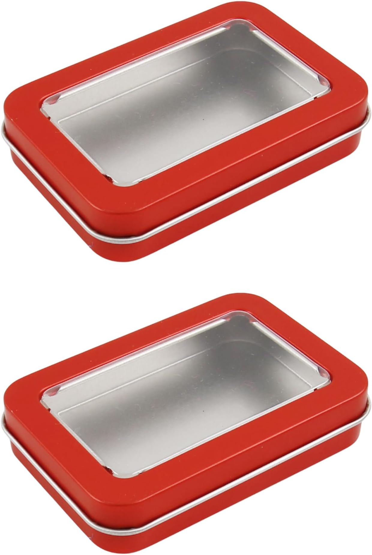 Vagocom 2pcs Empty Storage Boxes with Transparent Window,3.42×2.36×0.71inch / 8.7x6x1.8cm Small Metal Container Box with Lids for Storage Seed,Match,Crafts,Sewing(Red)