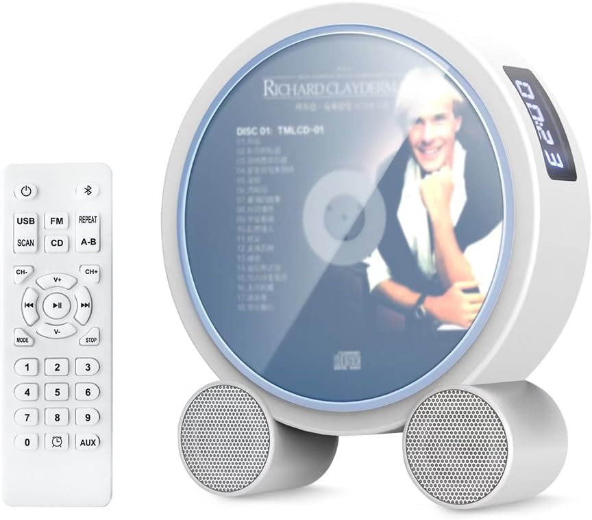 WOKALON Desktop Vertical CD Player Portable with Bluetooth for Home with LCD Screen Display Built in HiFi Speakers Support Timed Music ON/Off FM USB SD