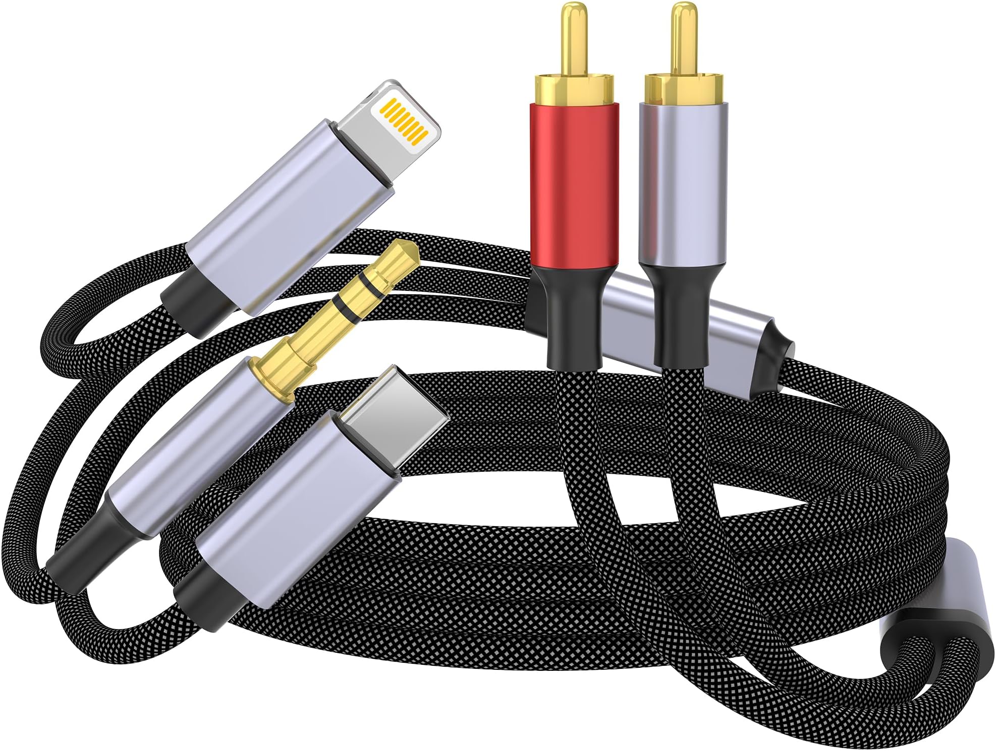 WORLDBOYU USB C 3.5mm to RCA Cable, Lightning to RCA Male to Aux Audio Adapter, HiFi Sound, Headphone Jack Adapter, 3 in 1 Audio Cable Connector for iPhone/iPad, Speaker, MP3, Tablet, HDTV 10FT