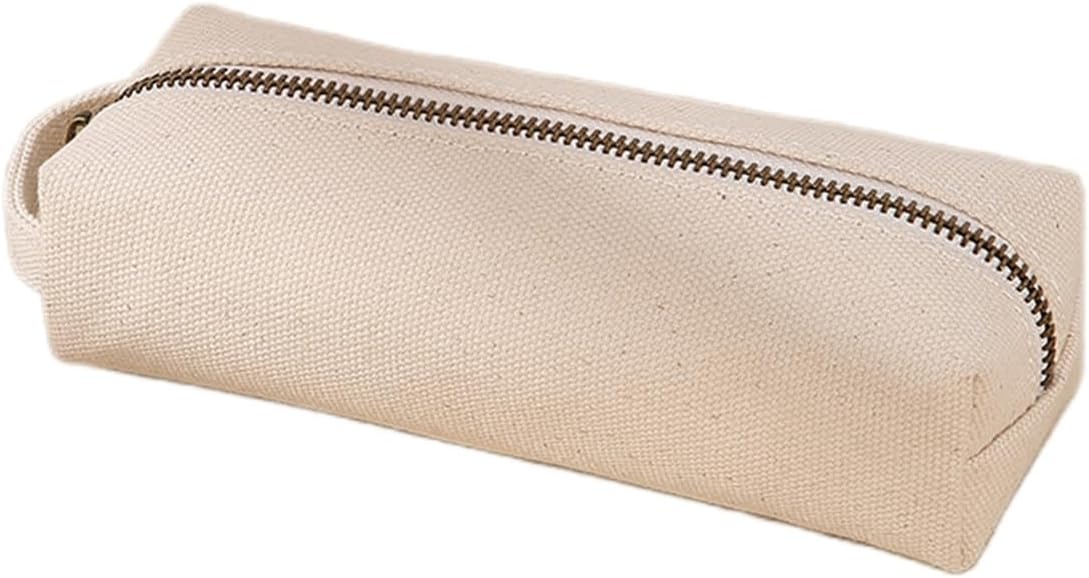 YONBEN Pencil Case Soft Cotton Canvas Pencil Pouch Bag for Easy Carry Stylish and Durable for Pens and Pencils (Beige)